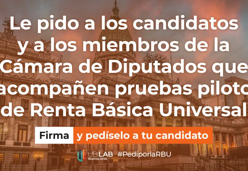 De la mano de la campaña electoral en Argentina, UBI Lab Network Buenos Aires lanzó una campaña para pedir a los senadores y diputados – y los candidatos – que se comprometan a impulsar proyectos pilotos de Renta Básica Universal en Argentina. UBI Lab Buenos Aires es parte de UBI Lab Network una red mundial de ciudadanos, investigadores y activistas explorando el potencial de la Renta Básica Universal. Actualmente hay 35 laboratorios UBI en todo el mundo, la mayoría ubicados en el Reino Unido pero también en Australia, Indonesia, Alemania y Argentina entre otros países. En las últimas elecciones en el Reino Unido el trabajo de esta organización consiguió comprometer a centenares de candidatos, incluidos casi la mitad de los electos al parlamento galés a firmar el compromiso. A partir de este esfuerzo tanto el gobierno de Gales como el de Escocia se han comprometido a impulsar proyectos pilotos para realizar estudios sobre la Renta Básica Universal.
