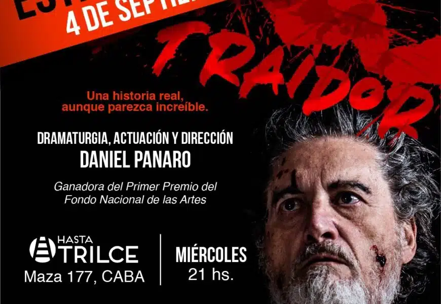 Con funciones todos los miércoles de septiembre y octubre a las 21 horas en Hasta Trilce, ubicado en Maza 177, CABA, “Traidor” se presenta como una cita imperdible para los amantes del teatro y la historia. Las entradas ya están disponibles a través de Alternativa Teatral. No pierdan la oportunidad de ser testigos de esta obra que, aunque situada en el pasado, resuena con inquietante actualidad.